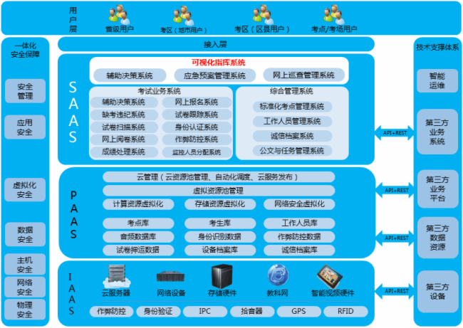 实现资源的重组和优化,对考试的全过程实现全方位的管理,例如系统管理、网上巡查、标准化考点档案管理、试卷流转管理、身份认证、工作人员管理、应急指挥、作弊防控、数据统计等功能。