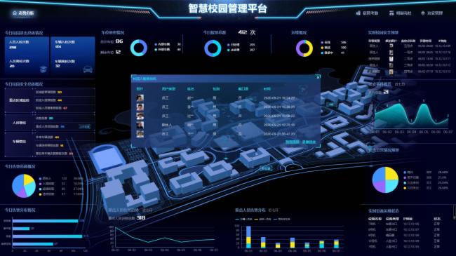 为加强统一集中的高效管理中心,紫光华智提供了基于大数据模型的定制化、可视化数据看板,支持安全数据、消防数据、分布态势、人车数据等校园不同数据查询需求,实现数据全量可观,自动生成与自动处理。