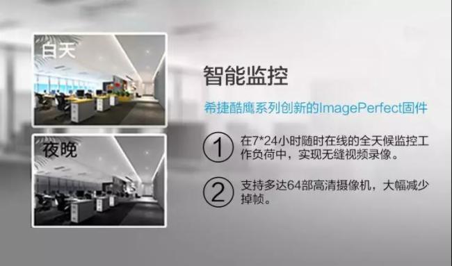 希捷与多家视频监控企业合作,推出采用希捷酷鹰人工智能监控硬盘的解决方案。希捷酷鹰人工智能监控硬盘使用的ImagePerfect AI固件能够从很大程度上减少掉帧和停机时间,为7*24小时全天候在线的监控环境提供流畅清晰的视频流。