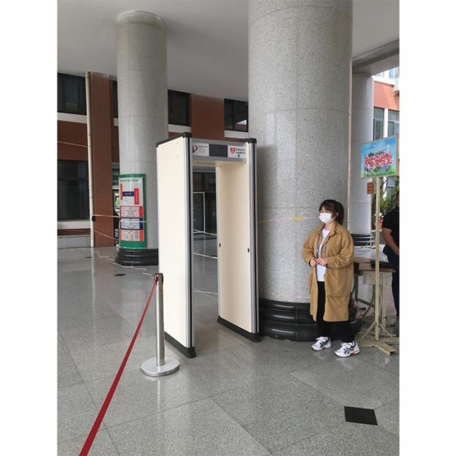 该款手机探测门还可以增加测温功能,无接触、高通量的体温快速检测,具有高精度和高分辨率,室温下测量误差±0.3℃。可以排除热源干扰和设置室外温差补偿,一旦体温超过37°的高温人员通过,系统自动报警,逐人检测,播报体温。这一功能可以很好地适用于当下疫情期间中考、高考等考场,在快速准确无接触式测温的同时,也避免了拥堵和人员滞留。